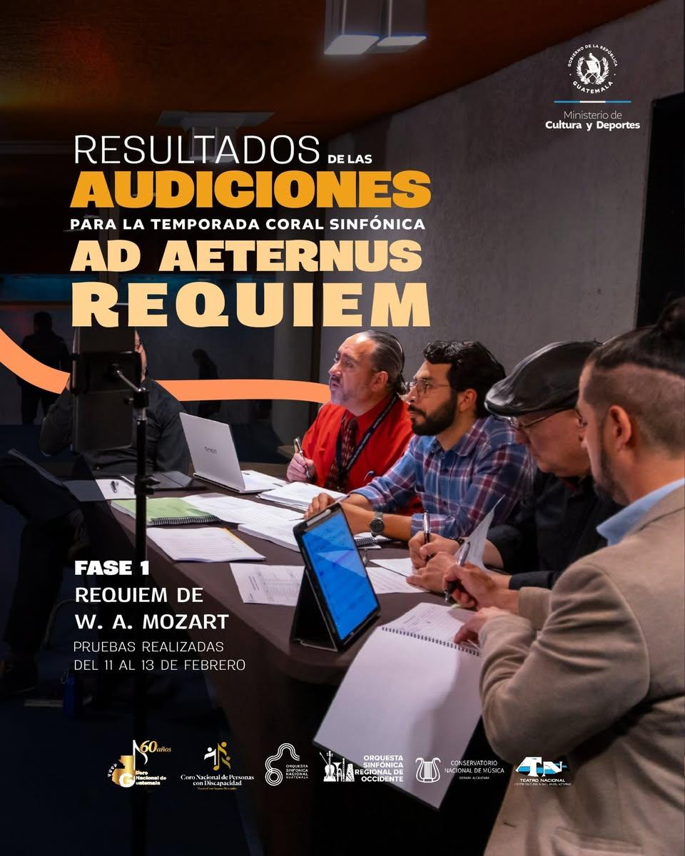 Conoce los resultados de las audiciones realizadas del 11 al 13 de febrero, correspondientes a la Fase 1: Requiem de W. A. Mozart, que formará parte de la Temporada Coral Sinfónica “Ad Aeternus Réquiem”.