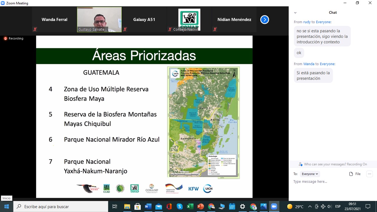 A través de un foro virtual, se realizó el cierre nacional del Proyecto Protección de Recursos Naturales Selva Maya, el cual fue implementado por la UICN en conjunto con las instituciones de áreas protegidas de Belice, Guatemala y México, con el apoyo del Ministerio de Cooperación Alemana y el Banco de Desarrollo Alemán (KfW).