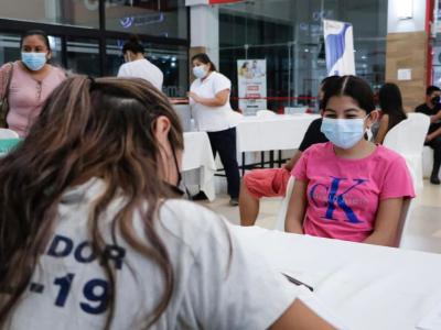 El centro comercial La Trinidad, ubicado en la cabecera departamental de Retalhuleu, es uno de los centros de vacunación con mayor afluencia en el departamento, pues al día inmunizan a alrededor de 200 personas, entre jóvenes y adolescentes de 12 a 17 años y población en general.