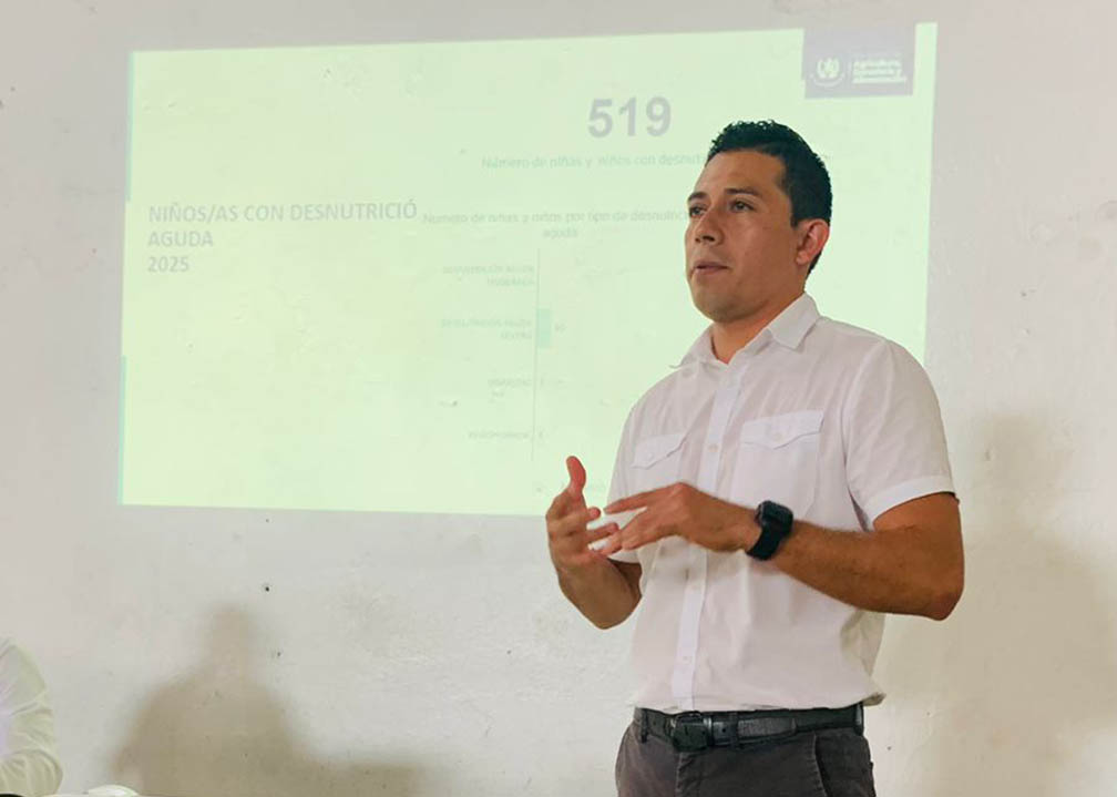 David Bámaca, nutricionista del componente de Agricultura Sensible a la Nutrición, realizó la presentación relativa a la situación de la desnutrición infantil, de acuerdo a la actualización departamental, con datos proporcionados por el Ministerio de Salud Pública y Asistencia Social (MSPAS). El informe incluyó la incidencia de casos por municipio, así como el número de niños recuperados y fallecidos hasta el mes de junio. Esta información es importante para orientar las intervenciones técnicas y las estrategias territoriales del MAGA.