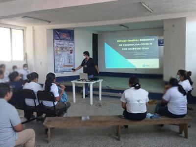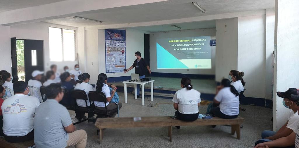 Para fortalecer el servicio de calidad, el personal de Salud de Retalhuleu recibió capacitaciones para continuar con el avance del trabajo de inmunización, lo que permite proteger a las personas contra el COVID-19.