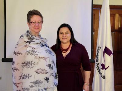 La Secretaria Aguilar presentó la puesta en común de acciones a escala de territorio y el Sistema Nacional para la Equidad y la Igualdad entre Hombres y Mujeres, el cual es un mecanismo de gestión política y coordinación técnica enfocado en estructurar el quehacer público en acciones sistemáticas y de largo plazo, mediante el instrumental técnico y metodológico para llevar a cabo intervenciones en función de la reducción de brechas de inequidad y el desarrollo integral de las mujeres, niñas y adolescentes.