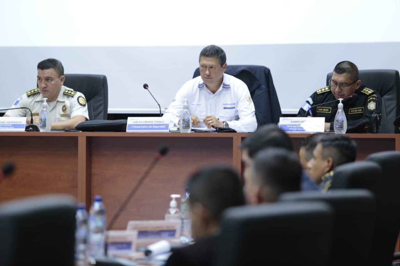 El Primer Viceministro del Ministerio de Gobernación, Carlos Franco Urzúa, junto a mandos de la Policía Nacional Civil (PNC), sostuvieron una reunión con Jefes de las Unidades de Especialidades de la Subdirección General de Operaciones (SGO) y de la Subdirección General de Investigación Criminal (SGIC), para conocer los planes y objetivos de trabajo.