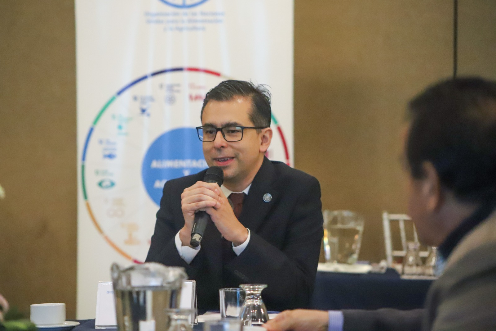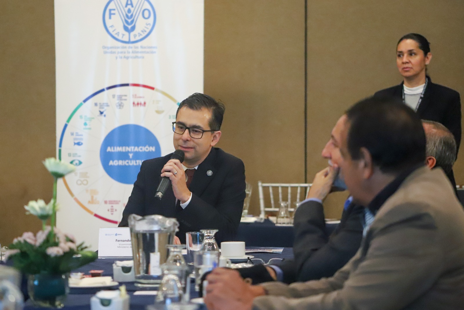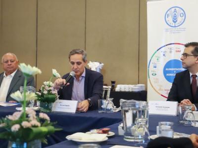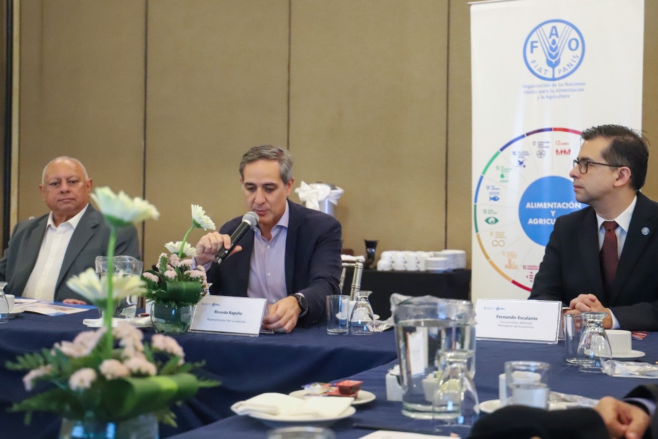 El viceministro de Desarrollo de la Mipyme, Lic. Fernando Escalante junto al viceministro de Desarrollo Económico Rural del MAGA, Ing. Pedro Rosado y el Representante para Guatemala de la Organización de las Naciones Unidas para la Agricultura y la Alimentación -FAO-, Ricardo Rapallo, sostuvieron reunión de trabajo para fortalecer las cadenas de valor agropecuarias.