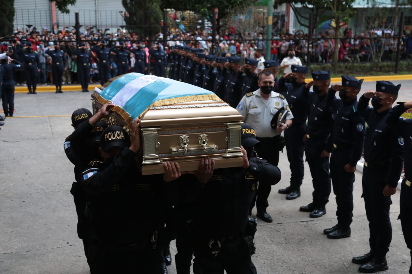Durante las honras fúnebres, las autoridades entregaron la Bandera Nacional de Guatemala a familiares y efectuaron 21 tiros de salva en memoria del agente, quien tenía 8 años de servicio en la institución policial.