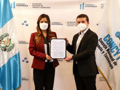 Guatemala, 26 de julio de 2021. La Secretaría Nacional de Ciencia y Tecnología (Senacyt) incorporó hoy a la primera empresa del sector productivo, la farmacéutica Roche, a la Alianza CTI. Esta se basa en el compromiso de diferentes sectores para acercar la ciencia a la sociedad y promover la transformación hacia una ciudadanía del conocimiento.