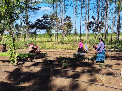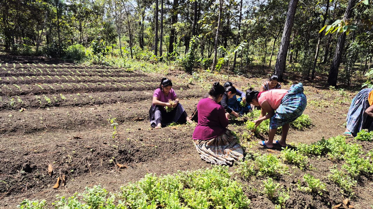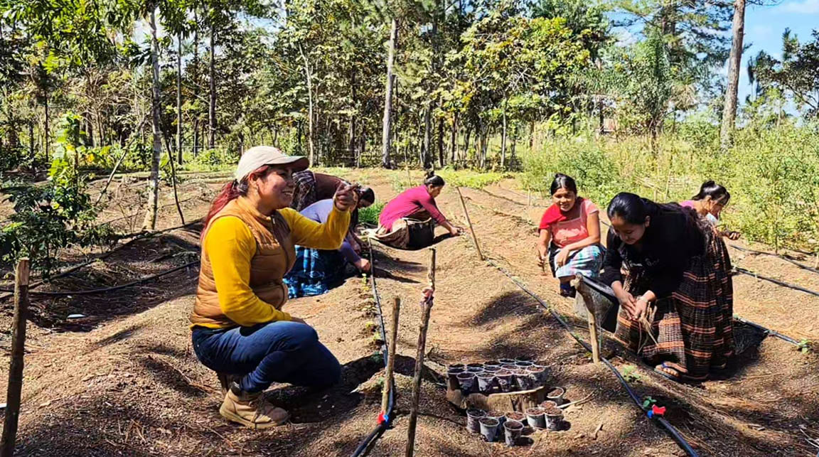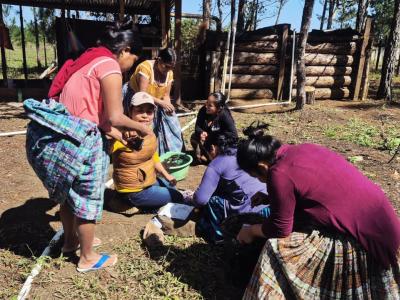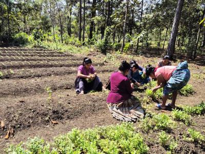 En la comunidad La Canoa, municipio de Poptún, departamento de Petén, integrantes de los Centros de Aprendizaje para el Desarrollo Rural (CADER) realizan la rotación de cultivos para prevenir la presencia permanente de plagas y enfermedades en el terreno.