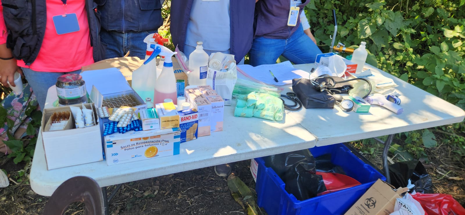 Un equipo de salud multidisciplinario se encuentra en el lugar brindando asistencia a quienes lo requieran. Los salubristas han atendido a personas por deshidratación, molestias en ojos, piel, cefalea, lesiones, heridas, medicamento y vacunación.