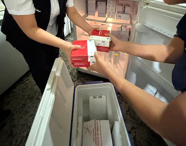 Las vacunas son trasladadas hacia puestos y centros de salud de los Distritos Municipales de Salud –DMS- de Mixco, San Juan Sacatepéquez, San Raymundo, San Pedro Sacatepéquez y Chuarrancho.