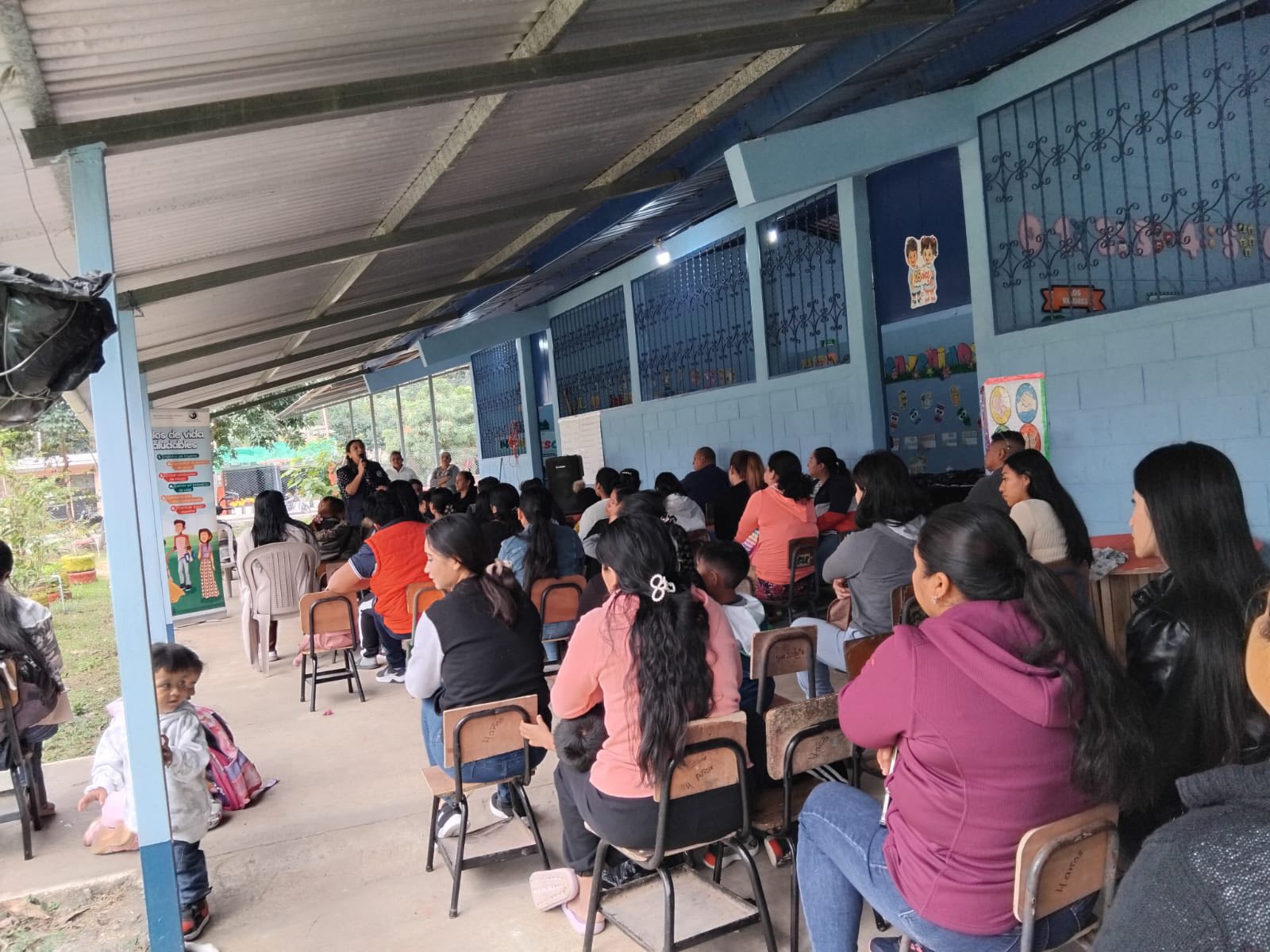 Padres de familia y personal docente de la Escuela de Párvulos del barrio El Porvenir, Poptún, Petén, participaron en una jornada informativa sobre las Jornadas Integrales de Salud Escolar, orientadas a fortalecer la prevención y el bienestar de la niñez.
