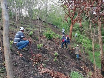 La jornada de reforestación fue en conjunto con la Unidad De Gestión Ambiental Municipal de Sansare y el Ministerio de Agricultura, con el fin de recuperar un área de tierra desprovista de bosque.