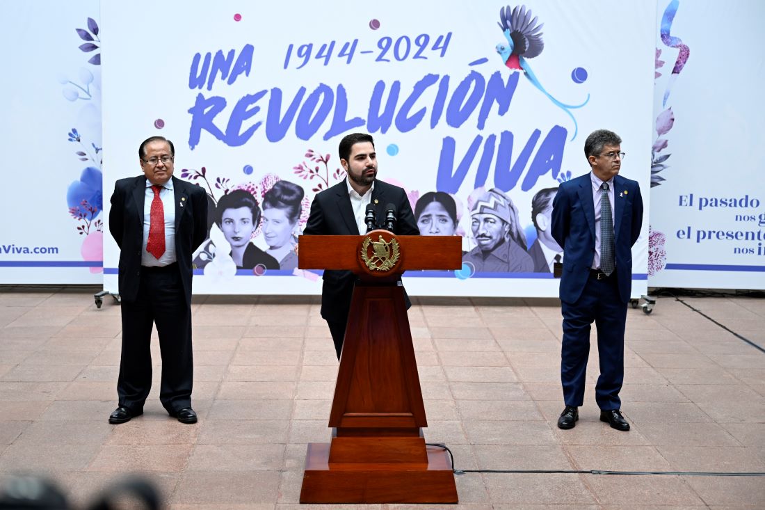 Secretario de Comunicación de la Presidencia Santiago Palomo, junto con los Ministros de Energía y Minas, Víctor Hugo Ventura, y de Salud, Joaquín Barnoya, ofrecieron conferencia de prensa sobre diferentes temas coyunturales, en el Patio de La Paz, en el Palacio Nacional de la Cultura.