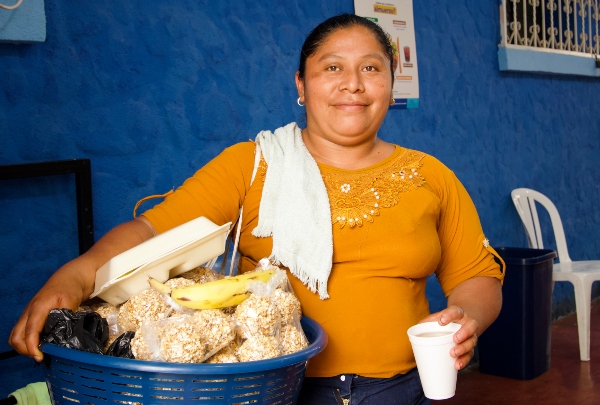 Santos tiene cinco hijos. Quedarse en casa no es una opción, ya que debe velar por mantener a su familia. Acompañada de sus dos hijos más pequeños, sale a vender a su comunidad dos veces por semana, diferentes productos para tener un ingreso extra en su hogar y asegurar el sustento diario.