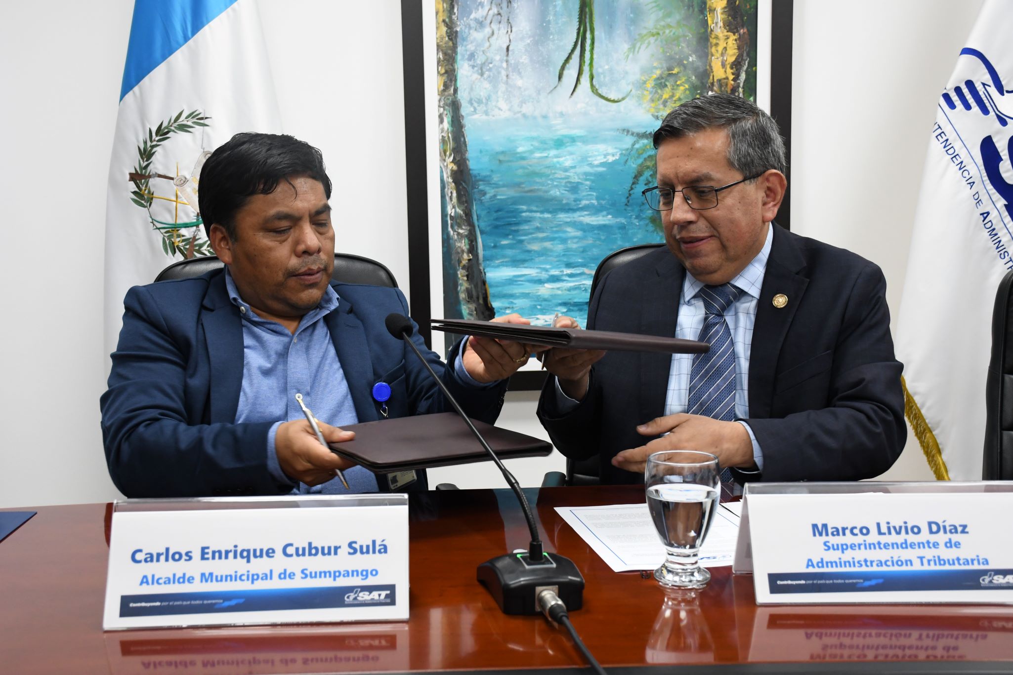 La Superintendencia de Administración Tributaria (SAT) y la Municipalidad de Sumpango, Sacatepéquez, firmaron convenio de cooperación interinstitucional, con el objetivo de fomentar la autonomía institucional, técnica y administrativa de las instituciones para el cumplimiento de sus funciones.