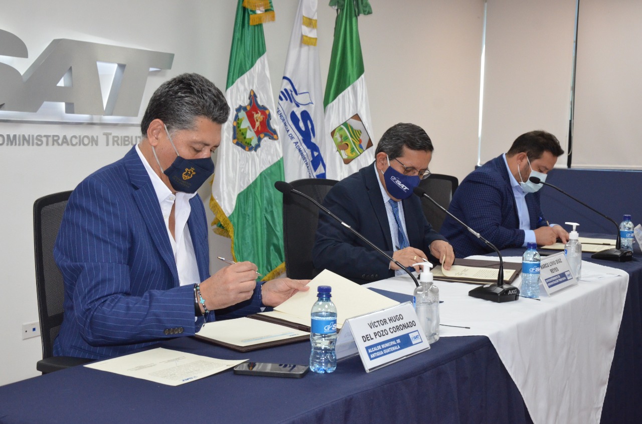 La Superintendencia de Administración Tributaria (SAT) y las municipalidades de Jutiapa y Antigua Guatemala recientemente suscribieron un Convenio de Cooperación Interinstitucional e Intercambio de Información con el objetivo de establecer mecanismos de cooperación, coordinación y asistencia entre instituciones.