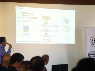 “Este es el inicio de un plan piloto de fortalecimiento que se quiere implementar a nivel nacional, en los 22 Consejos Departamentales de Desarrollo del país, este desafío va a implicar algunas decisiones tomadas por el Consejo Nacional de Desarrollo Urbano y Rural (Conadur), principalmente las de modificar fechas, asimismo hay una instrucción del presidente para ver el tema de los avales y los plazos”, dijo el Secretario Ejecutivo de la Presidencia, Víctor Hugo Godoy.