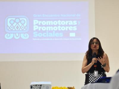 Ana María Méndez, subsecretaria de Coordinación Ejecutiva de la Presidencia mencionó la importancia del compromiso comunitario y el papel de promotores y promotoras sociales en el fortalecimiento de la gobernanza local y el desarrollo.