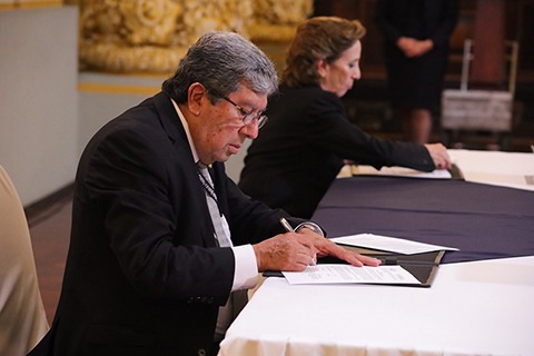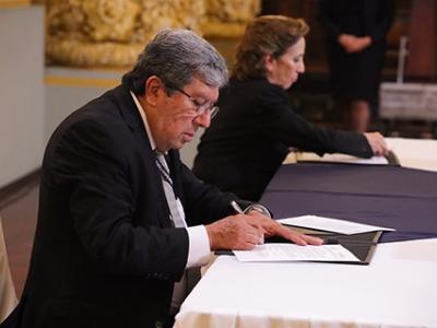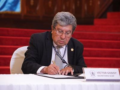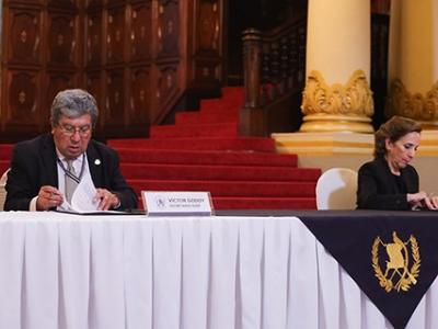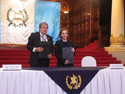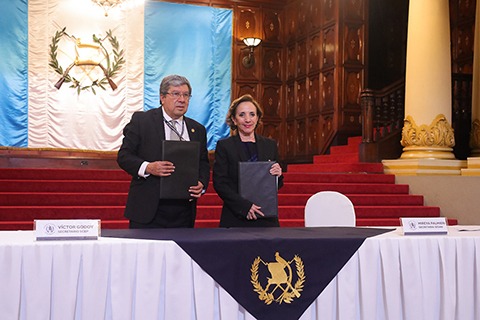 Firman esta carta de entendimiento, Víctor Hugo Godoy Morales, secretario Ejecutivo de la Presidencia y Martha Mireya Palmieri Santisteban, secretaria de Seguridad Alimentaria y Nutricional.