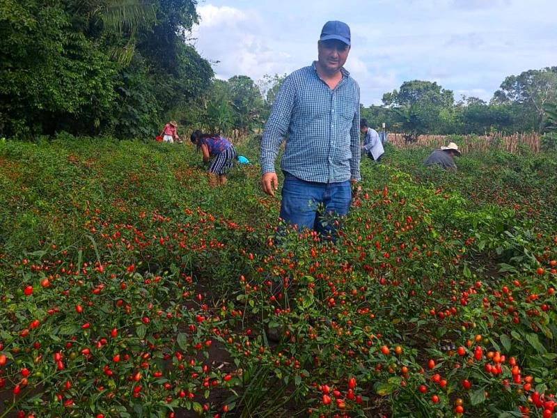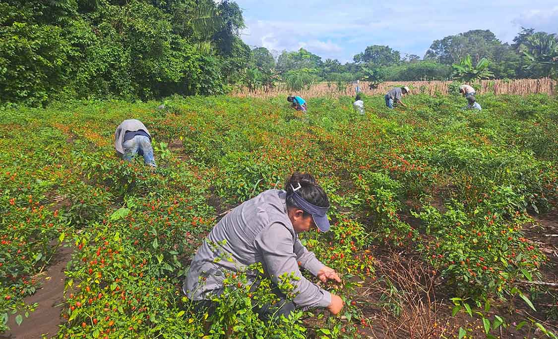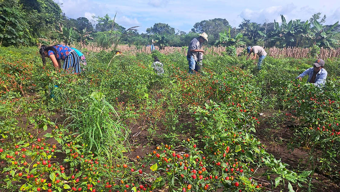 El Ministerio de Agricultura, Ganadería y Alimentación (MAGA), continúa con el apoyo técnico a las y los pequeños agricultores en Petén, el cual se brinda por medio del Viceministerio Encargado de Asuntos del Petén (VIPETÉN) y sus oficinas, como se hizo esta semana durante el corte de chile cobanero en el caserío Agua Blanca, Dolores, Petén.