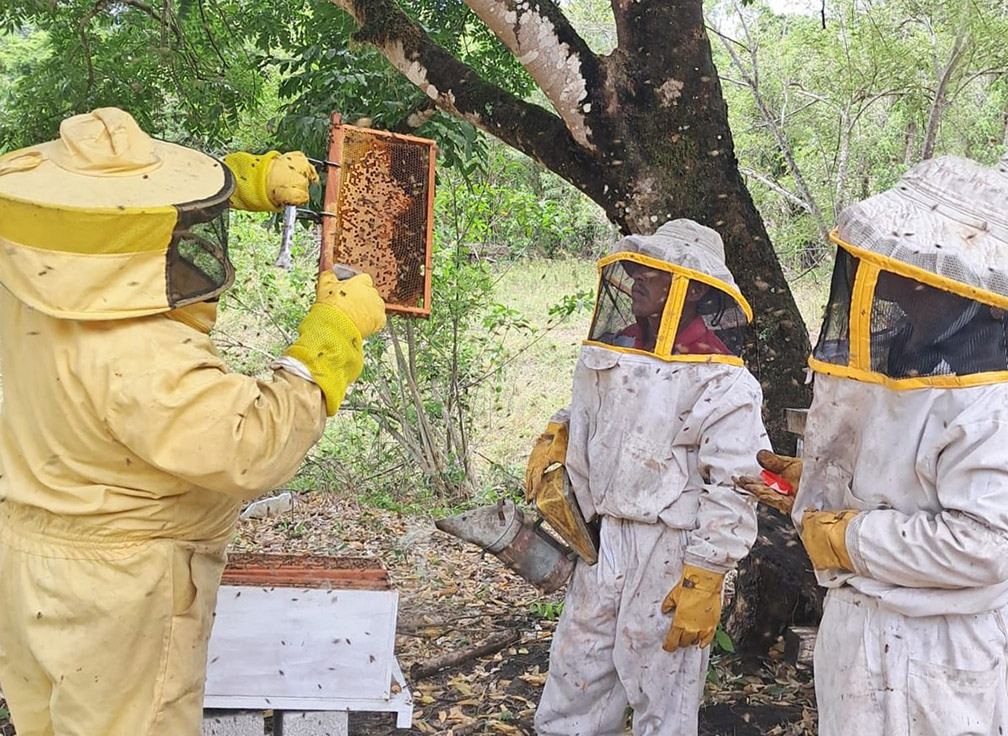 En la comunidad de La Romana, en el municipio de Poptún, se brindó asistencia técnica a un productor apícola con el propósito de mejorar la sanidad de las colonias de abejas del apiario, así como para establecer la presencia de varroa.