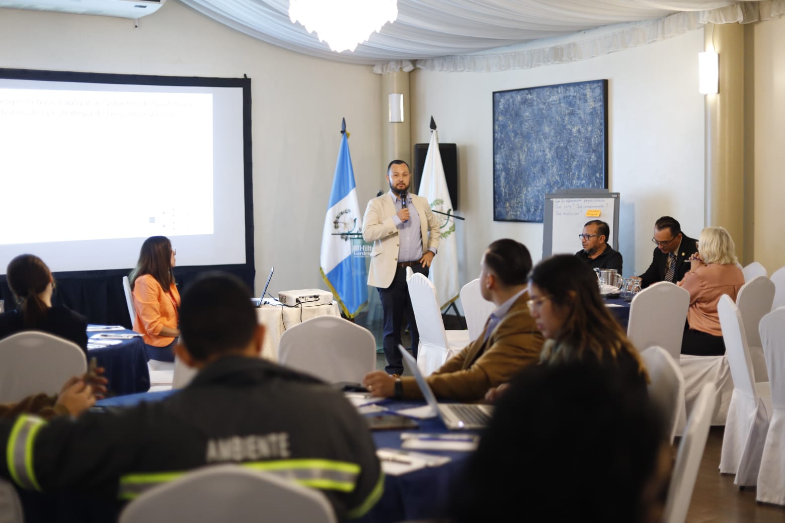 Saúl Pérez del departamento de mitigación al cambio climático del MARN, señaló “Este taller está enfocado en el marco de la mesa de descarbonización instruida por el señor presidente de la república el Doctor Alejandro Giammatei, y nos va a permitir establecer cuál es nuestra situación en cuanto a las emisiones de gases de efecto invernadero al ambiente, Guatemala no es un país emisor ya que nuestras emisiones apenas representan el 0.08% a nivel mundial, sin embargo nos estamos comprometiendo o bajar estas pequeñas emisiones para contribuir a nivel mundial con la reducción del calentamiento global”