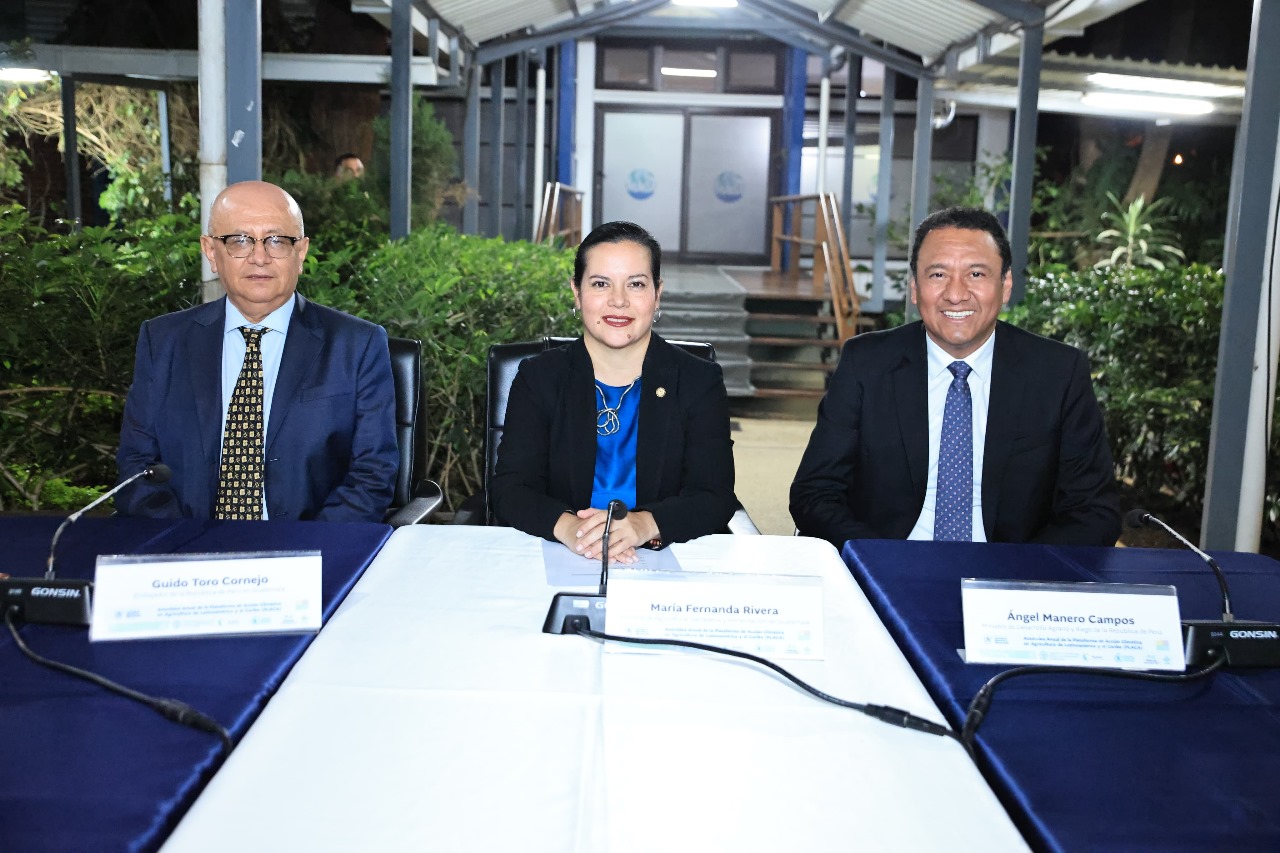 Previo a la Asamblea Anual de la Plataforma de Acción Climática en Agricultura de Latinoamérica y el Caribe (PLACA), de la cual Guatemala ostenta actualmente la presidencia, la ministra María Fernanda Rivera recibió la visita del ministro de Desarrollo Agrario y Riego de Perú, Ángel Manero, el embajador de Perú en Guatemala, Guido Toro, así como representantes de la Secretaría Técnica de PLACA y de la Alianza por el suelo de América Latina y el Caribe (ASLAC).