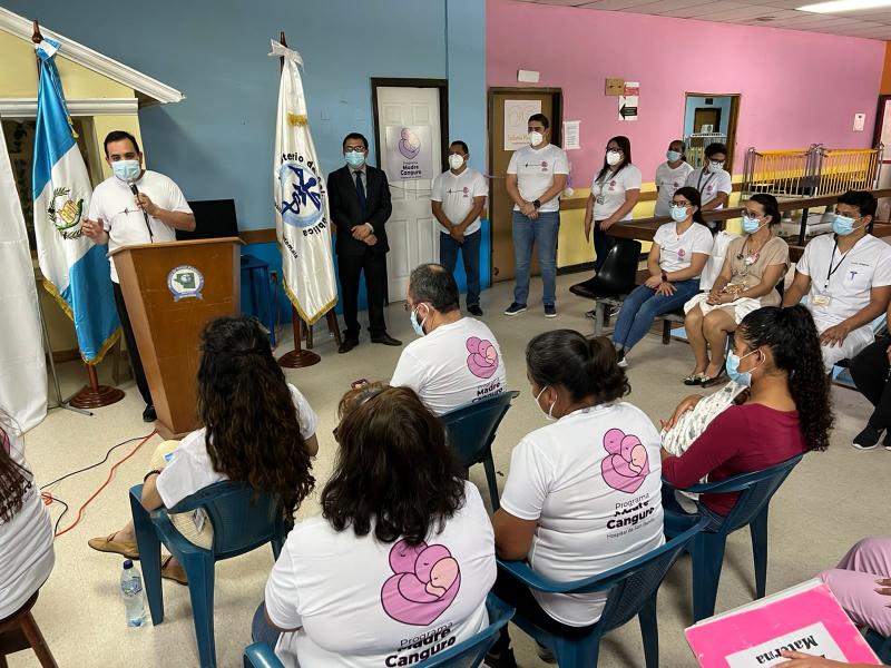 Con la implementación del Programa Madre Canguro en el Hospital de San Benito, Petén, ahora los recién nacidos prematuros y/o de bajo peso al nacer reciben una atención integral. Este es un método de cuidados integrales, cuya acción principal es la colocación del contacto piel con piel de la madre, padre o encargado. Este contacto garantiza el cuidado físico y emocional, y la regulación de la temperatura corporal.