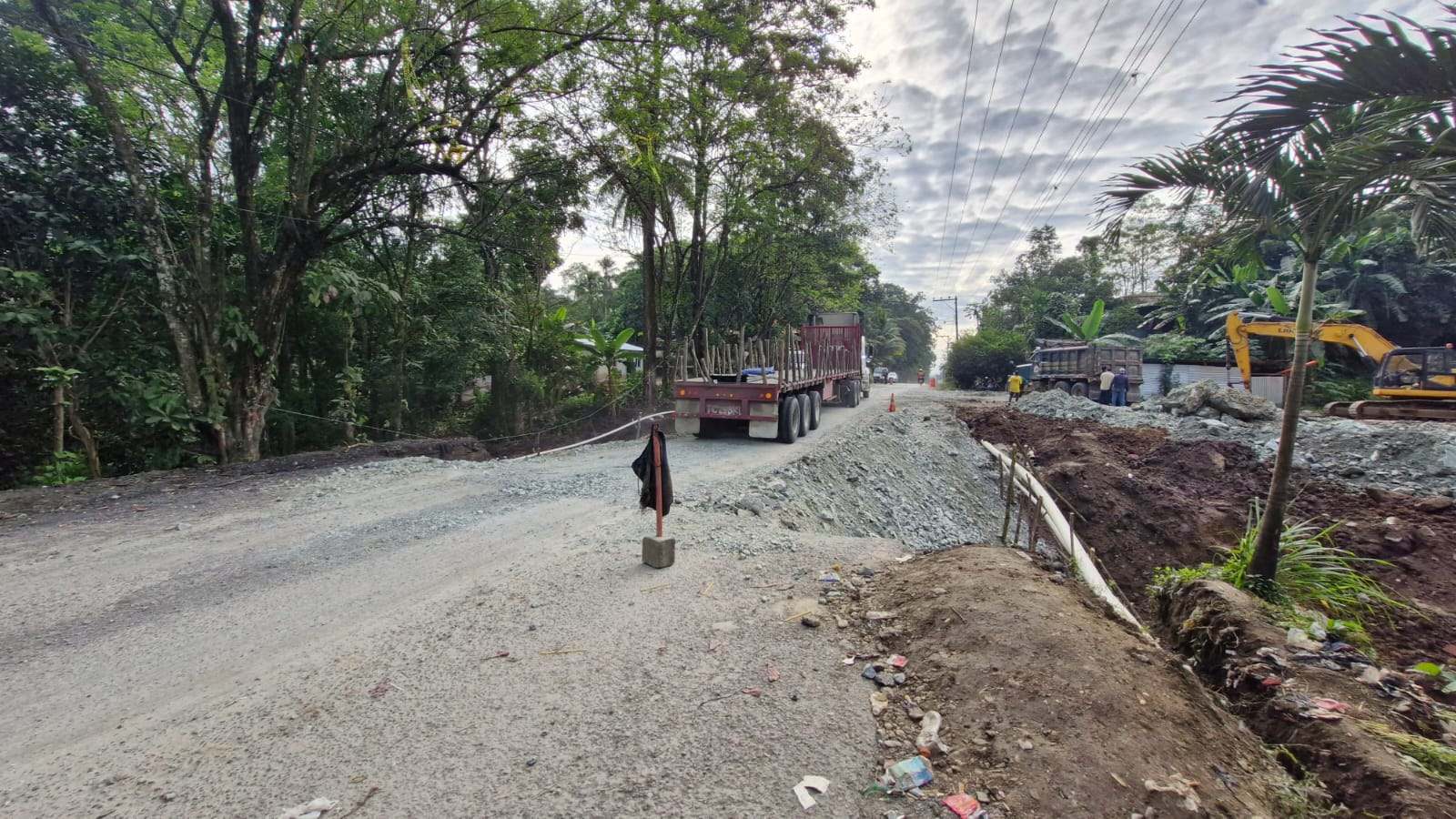 Actualmente, la maquinaria ejecuta labores de movimiento de material de relleno y adecuación del terreno, lo que ha permitido normalizar el paso provisional y asegurar la circulación de vehículos, beneficiando a conductores, transporte de carga y usuarios del servicio público.