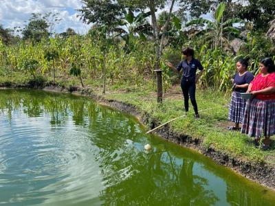 Personal técnico visitó a la productora Elena Xol, quien se dedica al cultivo de tilapia en estanques rústicos en la comunidad Cruce Semuy, y brindó apoyo para mejorar el manejo productivo y optimizar el rendimiento de la actividad acuícola.