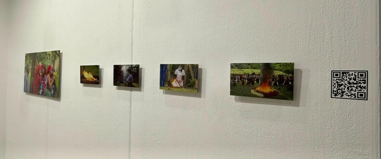 La exposición presenta 14 fotografías de los artistas Francisco Cottom y Sergio Montúfar, que retratan paisajes, monumentos y ceremonias rituales de Tak’alik Ab’aj, incluyendo la Estela 5, la constelación Orión, esculturas de cabezas colosales y ceremonias k’iche y kaqchikel.