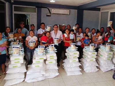 Las raciones alimentarias incluyen: frijol negro, arroz blanco, harina de maíz nixtamalizada, botellas de aceite vegetal, hojuelas de avena, azúcar fortificada con vitamina “A” y mezcla de harina de maíz soya fortificada. Cada familia ha recibido tres raciones para cubrir sus necesidades alimenticias durante tres meses. La entrega fue coordinada por el personal del Departamento de Asistencia Alimentaria del Viceministerio de Seguridad Alimentaria y Nutricional (VISAN).