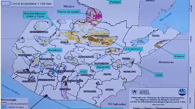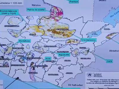Se estima que en 193 municipios del país pueden ser afectados por este fenómeno, así como los cultivos de hortalizas, maíz, frijol café, aguacate, banano, cardamomo, papaya, hule, plátano, caña de azúcar, palma de aceite y pastos.