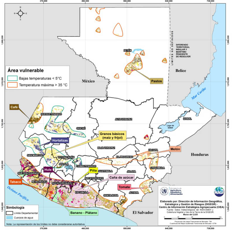 Se prevé una disminución de lluvias en el territorio nacional, con un incremento en las temperaturas máximas acompañado de un descenso por la madrugada, por lo que son monitoreados 191 municipios de 20 departamentos, de acuerdo con el análisis agrometeorológico hecho por la Dirección de Información Geográfica, Estratégica y Gestión de Riesgos (DIGEGR), del Ministerio de Agricultura, Ganadería y Alimentación (MAGA), basado en el pronóstico del Instituto Nacional de Sismología, Vulcanología, Meteorología e Hidrología (INSIVUMEH).