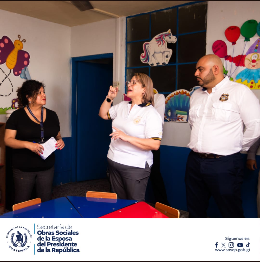 En el marco del compromiso constante de la Secretaría de Obras Sociales de la Esposa del Presidente (SOSEP) por mejorar y fortalecer los servicios sociales a nivel nacional, la Secretaria Dra. Zulma Calderón llevó a cabo una visita de monitoreo al Centro de Atención de Desarrollo Infantil (CADI), ubicado en el Centro de Orientación Femenino de Fraijanes como el Centro de Detención Preventiva para Mujeres Santa Teresa