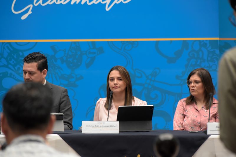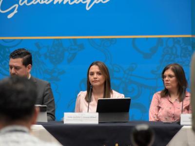 Guatemala, 12 de septiembre de 2023. La secretaria general de Planificación, Luz Keila Vilchez, brindó una conferencia de prensa junto a los otros integrantes de la Comisión de Transición, para especificar la información que se entregó al gobierno entrante, en el marco del proceso de transición gubernamental 2023-2024.