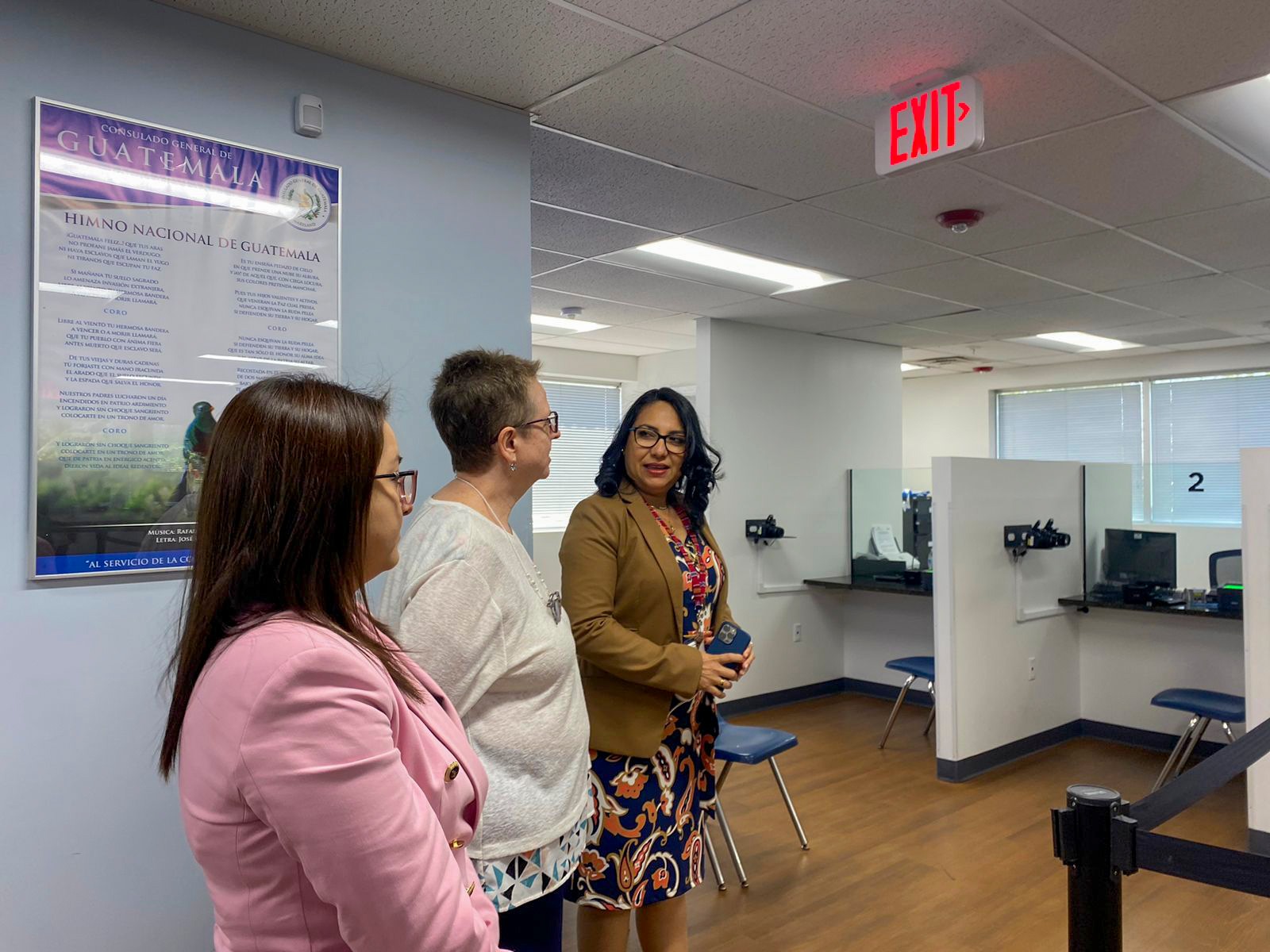 Como parte de la agenda preparada por la Embajada de Guatemala en Washington, se realizó una visita a las instalaciones de dicho Consulado y con motivo de su reciente inauguración, con el fin de conocer los diversos servicios que ofrecen, con especial atención a las mujeres migrantes guatemaltecas.