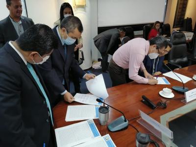 Guatemala, 12 de octubre de 2022. El Sector Trabajador, Empleador y Gobierno coincidieron en incrementar el salario mínimo para 2023 y usar una fórmula técnica que les permita establecer el porcentaje de incremento basado en datos y firmaron dictamen razonado que será enviado al Ministro de Trabajo y Previsión Social como parte del proceso de fijación del salario mínimo del próximo año.