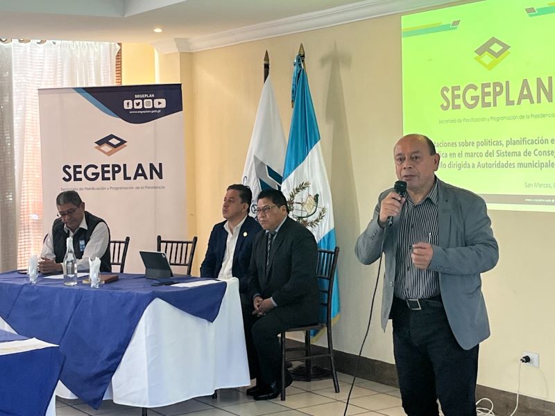 El objetivo de la capacitación, que tuvo lugar en San Pedro Sacatepéquez, fue facilitar orientaciones a los alcaldes y miembros del Concejo Municipal período 2024-2028, para que cuenten con información básica sobre políticas, planificación e inversión pública, y de esa forma se fortalezca la administración municipal, lo cual contribuirá al desarrollo en los territorios.