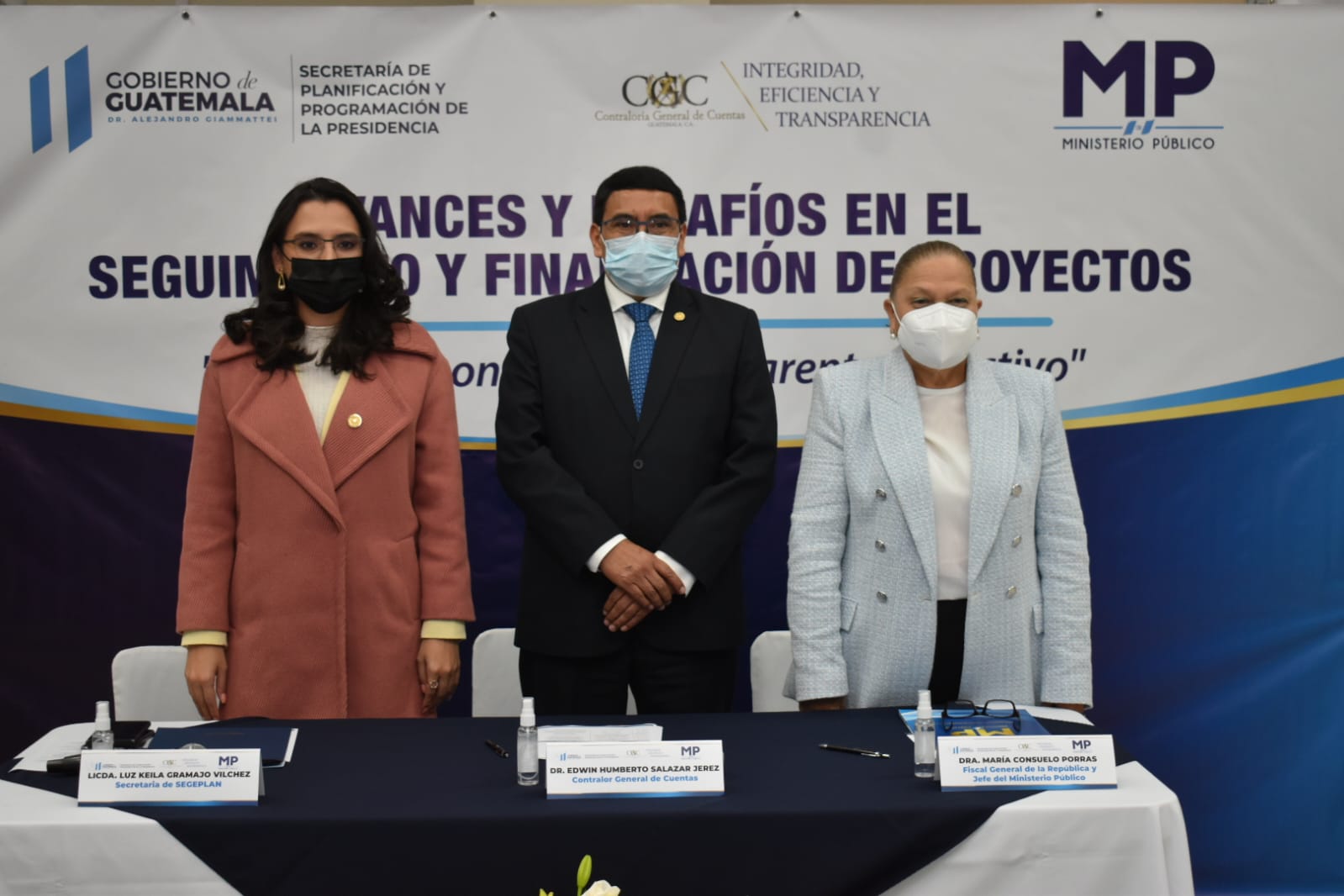 En el encuentro de este día, además de la secretaria general de SEGEPLAN, también participaron María Consuelo Porras, Fiscal General de la República y Jefe del Ministerio Público, y Edwin Humberto Salazar, Contralor de Cuentas.