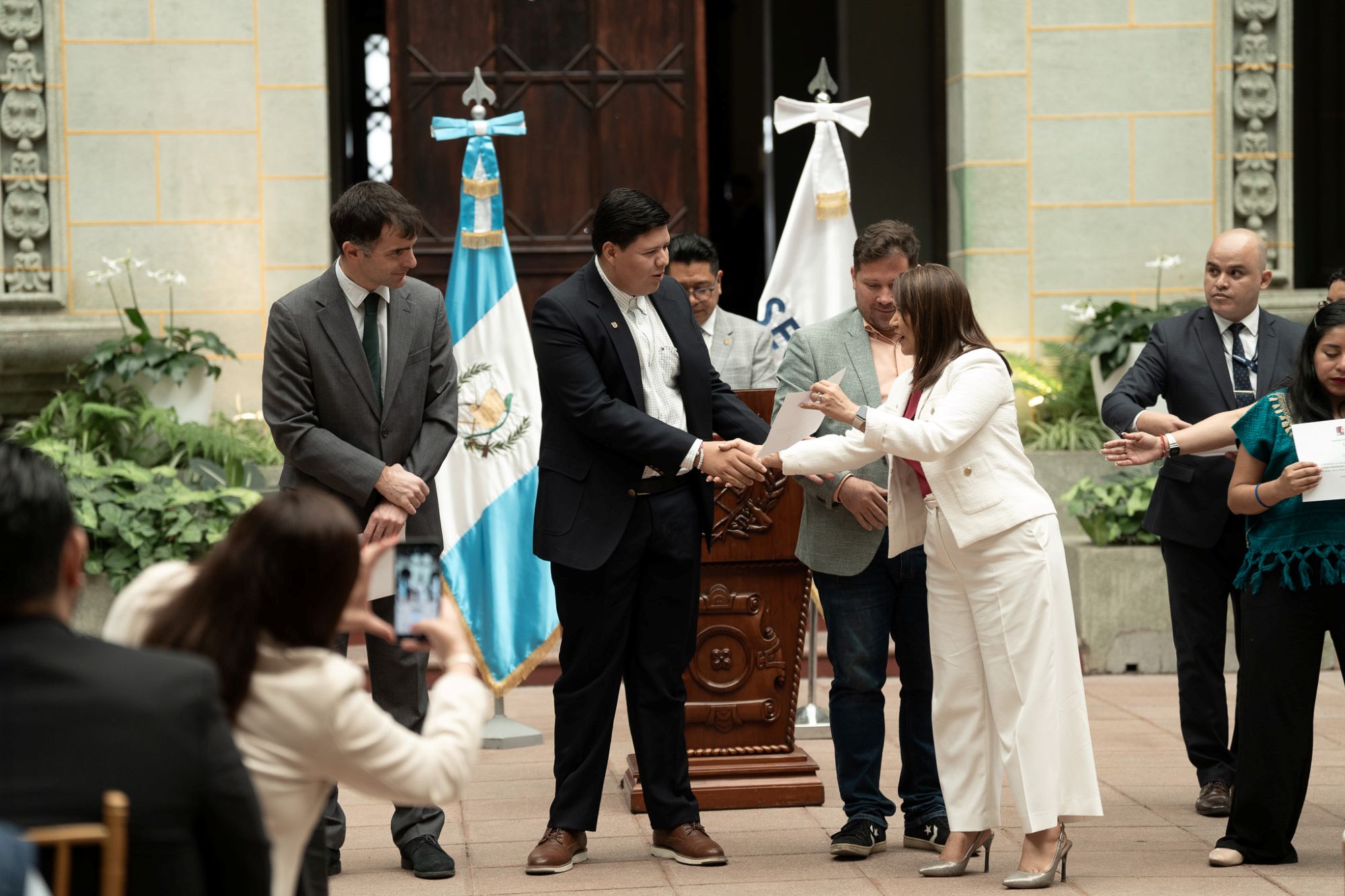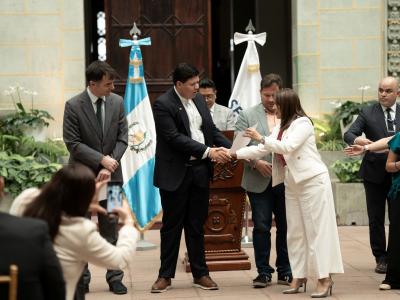 “Como Gobierno estamos asumiendo la responsabilidad de abrir más caminos para que este derecho a la educación se ejerza generando oportunidades para las y los guatemaltecos”, remarcó la subsecretaria de Cooperación y Alianzas para el Desarrollo de SEGEPLAN, Iliana Peña, durante el acto simbólico de entrega que se efectuó en el Palacio Nacional de la Cultura.