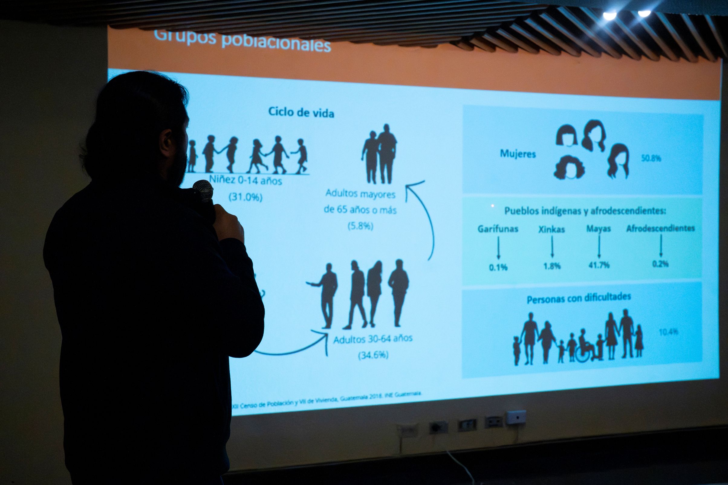 El especialista Velásquez, quien hizo una presentación sobre la transición demográfica del país y las brechas de desigualdad en los pueblos indígenas, explicó la importancia del análisis demográfico en todo el ciclo de políticas públicas.