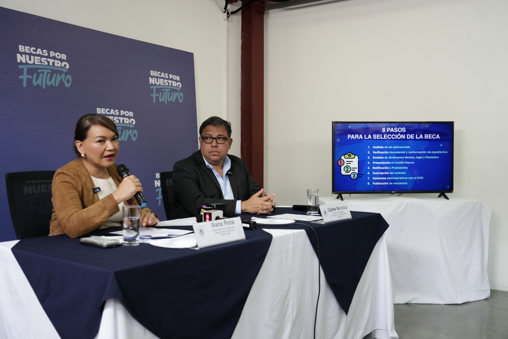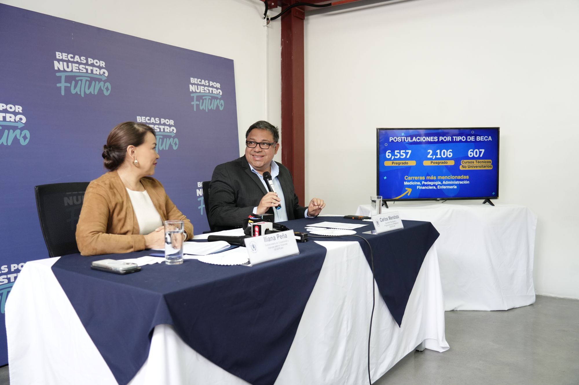 Cómo se desarrollará el análisis y los pasos a seguir para otorgar las becas fueron detallados en una conferencia de prensa por el secretario general de Planificación, Carlos Mendoza, y la subsecretaria de Cooperación y Alianzas para el Desarrollo, Iliana Peña.