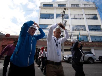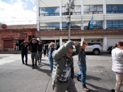 En SEGEPLAN la Brigada de Atención de Emergencias planificó y coordinó la evacuación de sus tres instalaciones en la zona 1 de la capital, activando los protocolos y procedimientos para evacuación y resguardo del personal en los puntos de reunión.