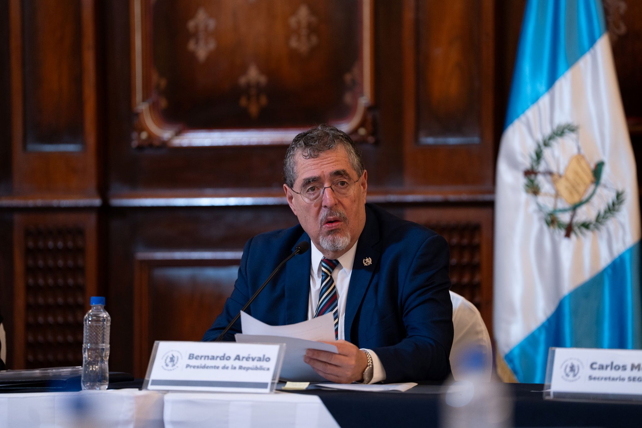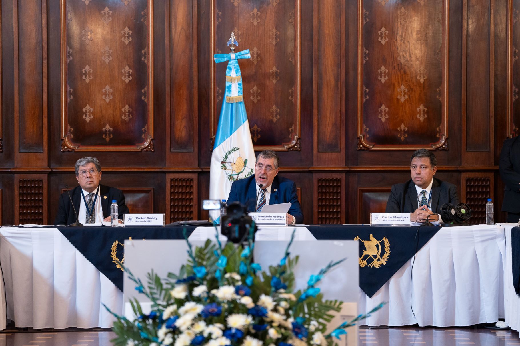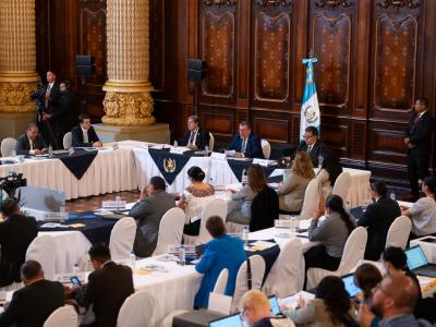 La sesión de trabajo de este viernes estuvo encabezada por el presidente Bernardo Arévalo, el secretario de Planificación Carlos Mendoza y el secretario de Coordinación Ejecutiva, Víctor Hugo Godoy. Además, contó con la participación de miembros de sociedad civil y de autoridades de distintos ministerios y secretarías del Ejecutivo.