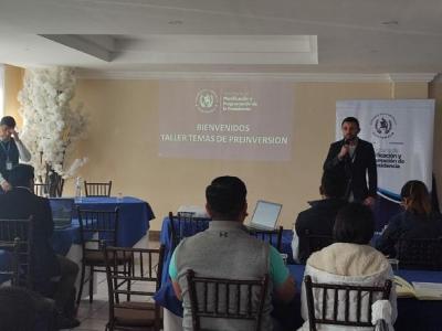 La capacitación estuvo a cargo de profesionales de SEGEPLAN Central, entre ellos Janssen Gramajo, subdirector de Preinversión y Daniel Galindo, especialista en preinversión, y como ponentes, Rudy García, delegado en funciones; Sheila de León y Mauro Godínez, especialistas de la delegación departamental de San Marcos.