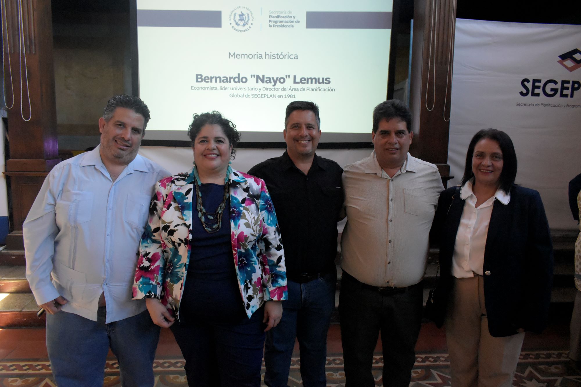 El homenaje contó con la participación de la familia de Bernardo Lemus Mendoza, los exsecretarios de SEGEPLAN Raúl Villatoro (1980-1982), Patricia Orantes (2006-2008) y Karin Slowing (2008-2012), así como el comisionado Presidencial para la Paz y los Derechos Humanos, Héctor Oswaldo Samayoa.