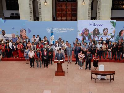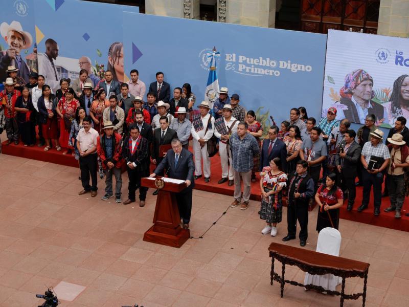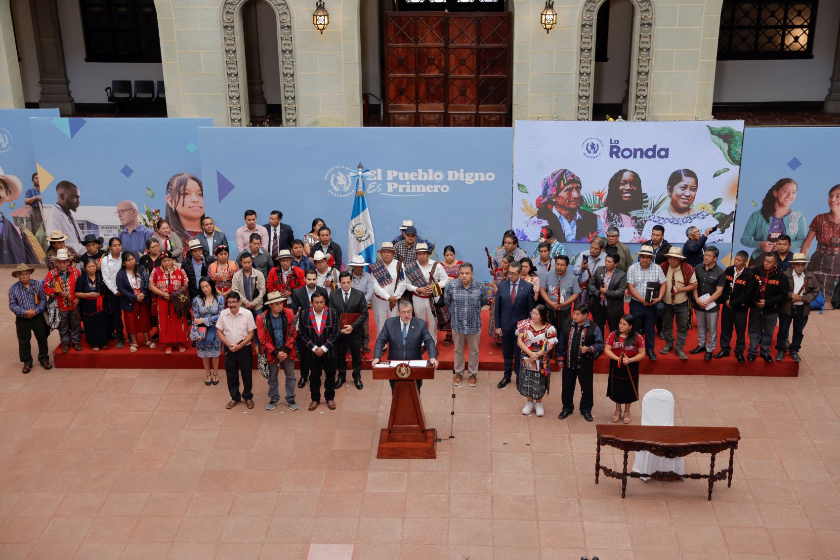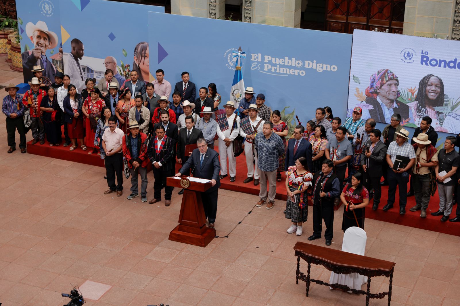 La propuesta fue presentada por el Presidente en La Ronda, y cuenta con el respaldo de los pueblos originarios. El mandatario recordó que la iniciativa es resultado del diálogo continuo que hubo entre el Gobierno de Guatemala y representantes indígenas. Por parte del Ejecutivo, las instituciones que participaron fueron la Secretaría de Planificación y Programación de la Presidencia (SEGEPLAN), la Secretaría Privada de la Presidencia, la Secretaría General de la Presidencia y el Ministerio de Finanzas Públicas.
