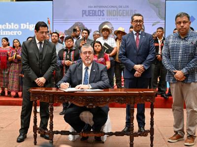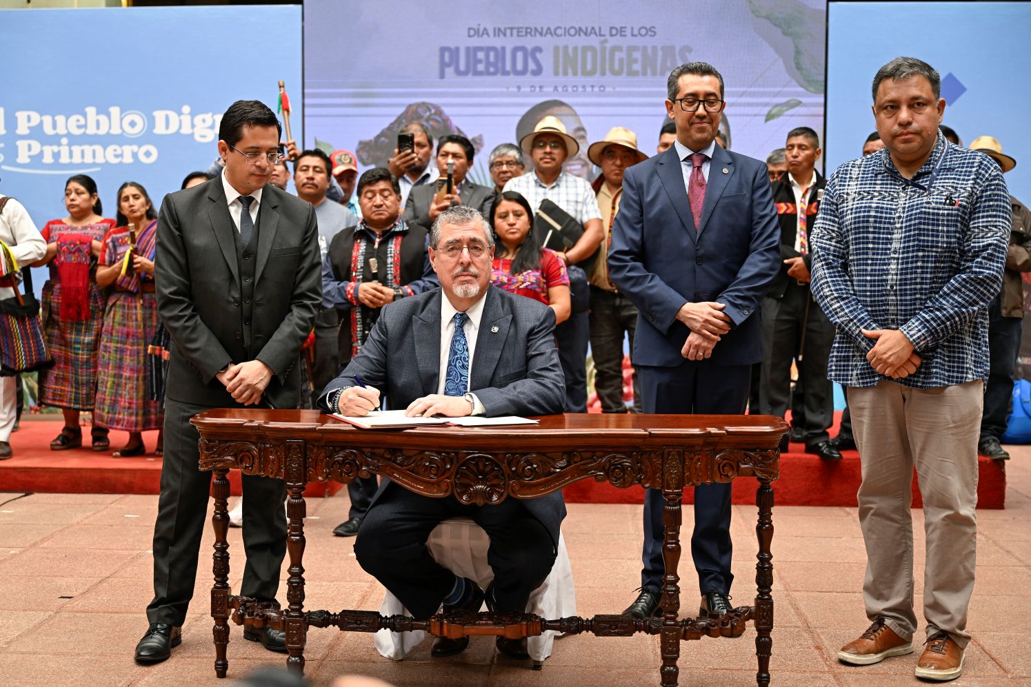 Guatemala, 7 de agosto de 2025. El Presidente de la República, Bernardo Arévalo, presentó junto a las autoridades indígenas y ancestrales una iniciativa de ley para reformar el artículo 30 bis del Decreto 101-97 Ley Orgánica del Presupuesto. Esas reformas tienen el objetivo de promover la inversión pública en propiedades que pertenecen a pueblos originarios e impulsar el desarrollo en comunidades marginadas históricamente.