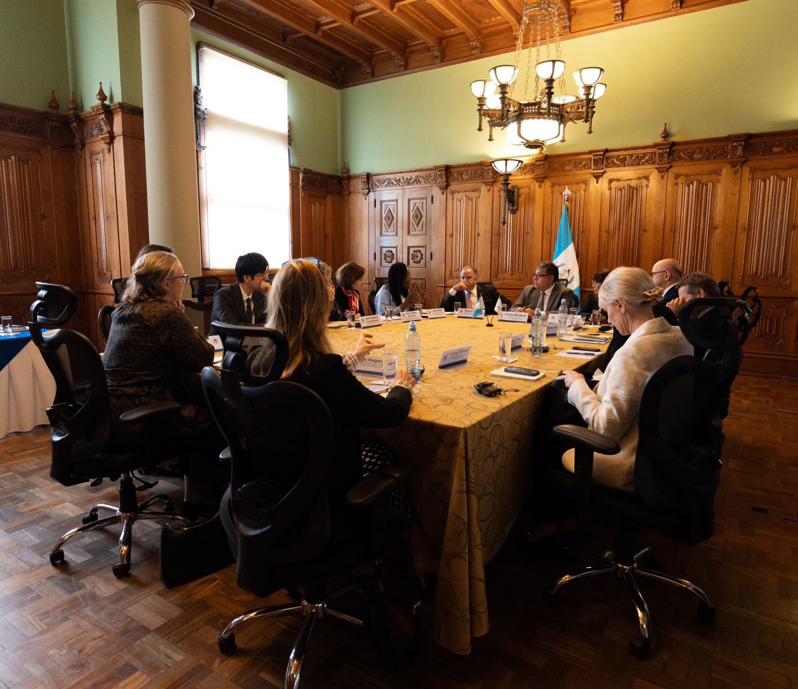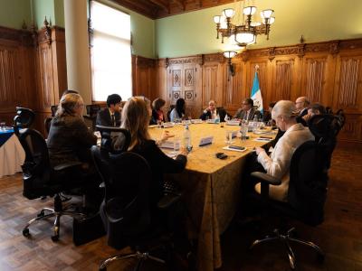 Previo al diálogo entre la delegación de PBF y SEGEPLAN, el presidente Bernardo Arévalo sostuvo un encuentro con los visitantes para brindarles un contexto sobre cómo se encuentra el país en cuanto a consolidación de la paz y sus retos.
