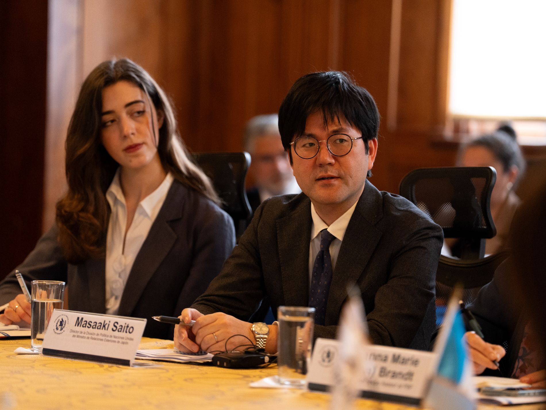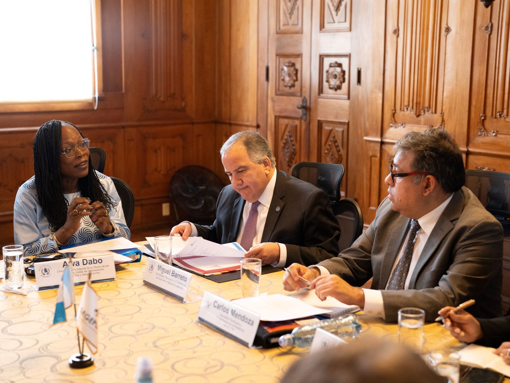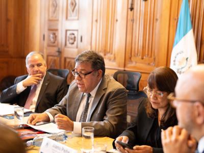 El funcionario estuvo acompañado por la subsecretaria de Cooperación y Alianzas para el Desarrollo, Iliana Peña, y el coordinador residente de las Naciones Unidas en Guatemala, Miguel Barreto.